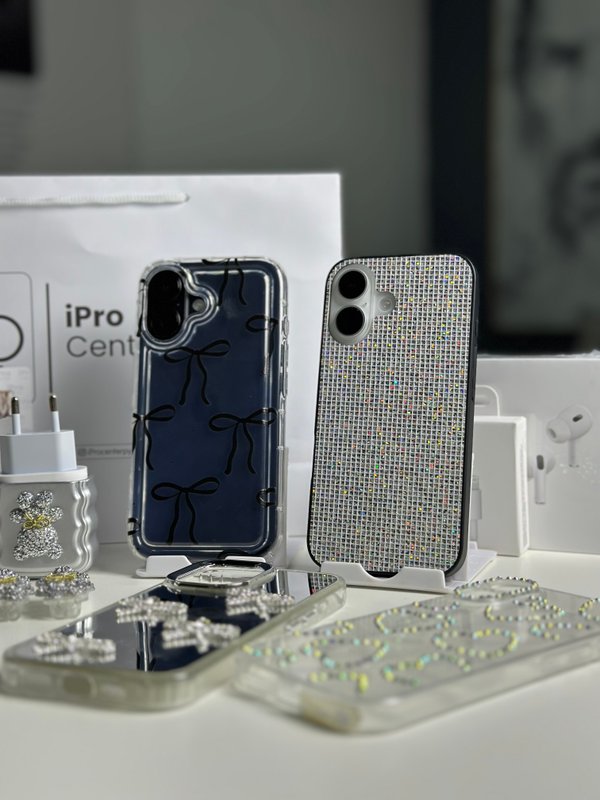 Case transparente con detalles de moños